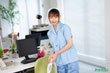 です!! 地味な清掃員のコスチュームでしたがオフィスで同じ社員に異なるシチュエーショ